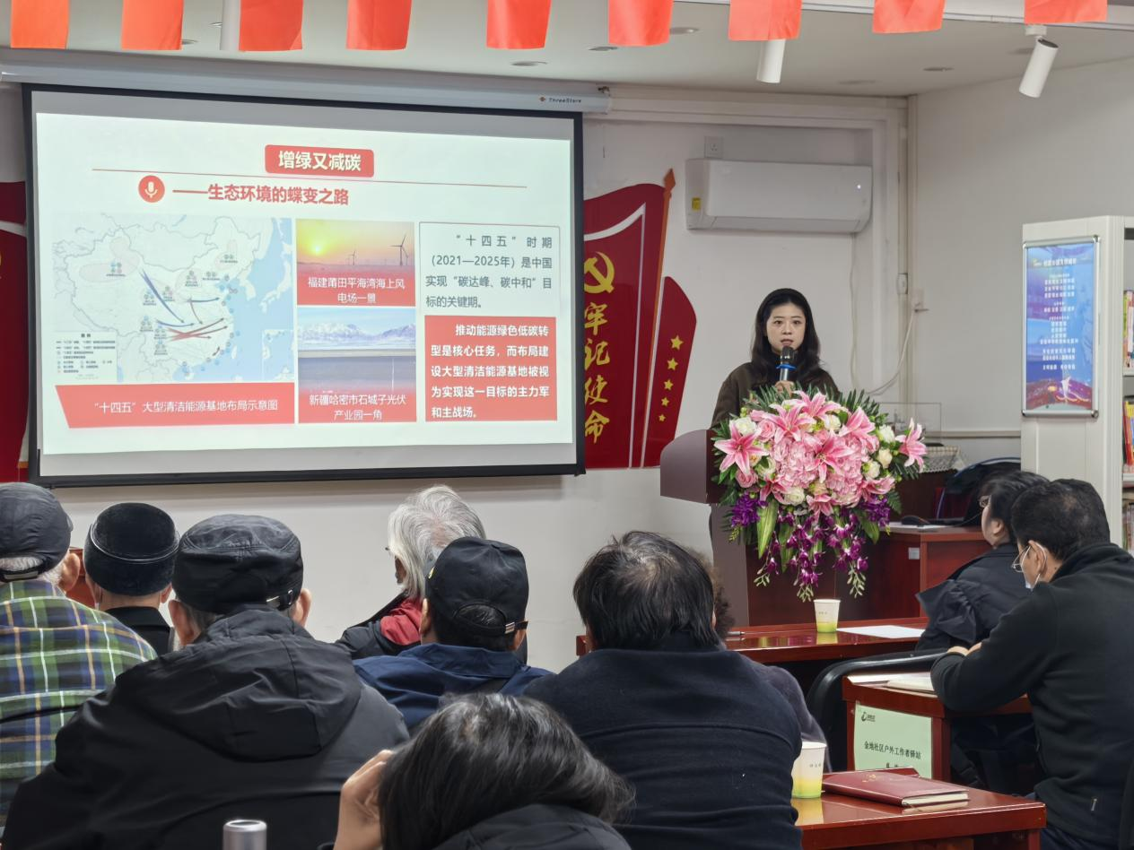 bv伟德国际1946直属党支部师“声”理论宣讲团的郑翔云老师以《锚定宏伟目标接续奋斗,续写中国奇迹崭新篇章》为题讲授专题党课。郑老师紧扣二十届四中全会核心要义,系统解读了全会审议通过《中共中央关于制定国民经济和社会发展第十五个五年规划的建议》的重大意义,全面回顾了“十四五”时期我国在经济发展、科技创新、民生福祉、生态文明等领域取得的历史性成就,从GDP连续跨越三大台阶到人均预期寿命稳步提升,从“天宫”空间站常态化运营到5G通信大规模应用,从社会保障体系不断完善到生态环境质量持续改善,用翔实的数据和生动的案例展现了中国式现代化的坚实步伐。结合社区工作实际与民生热点,郑老师重点阐释了“十五五”时期经济社会发展的谋篇布局,围绕高质量发展、科技自立自强、民生保障改善、美丽中国建设等重点任务,解读了全会精神在基层治理、社区服务、民生保障中的实践要求,让理论宣讲变得通俗易懂、贴近生活,使在场党员深刻领会到全会精神与社区发展、群众生活的紧密联系。